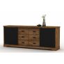 industriële dressoir in een folie van mangohout past in elk hedendaags interieur. Voorzien van zes lades met metalen ladengeleiders. Aan de buitenzijden een opbergruimte met telkens één legplank.